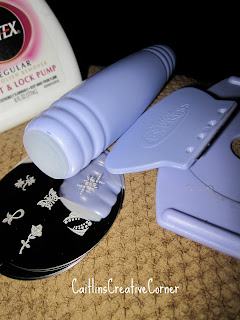 I checked out my Rite Aid today because someone on PolishAholics Anonymous said that they got a stamper from there, and I wanted to see if mine had one, because I really wanted to try out stamping... I wasn't actually expecting to find it, but it was there, so for $10, Why not? It had a stamper, scraper, plate holder and 5 image plates! With cute images too!