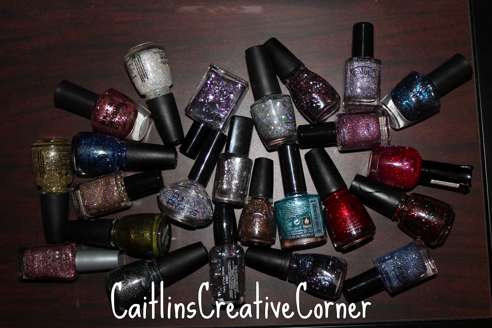 For this Franken, I just dumped a little bit of a couple of glitters I own into one empty TC bottle I had. when I say a couple I really mean around 24 different glitter polishes...